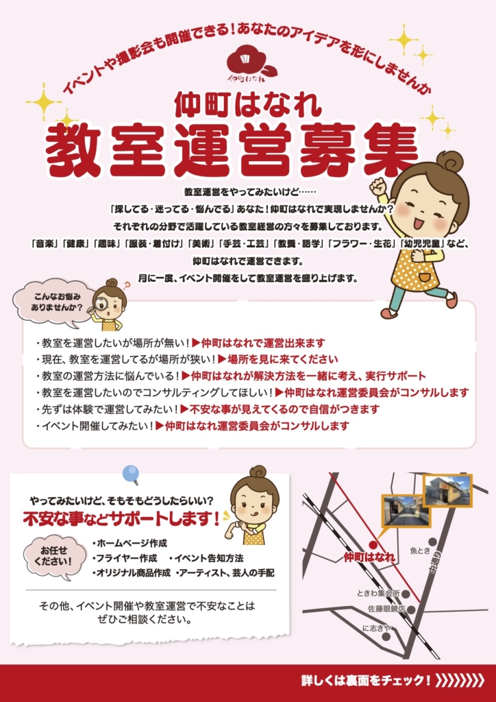 自由な発想でご自由にお使いいただける仲町はなれを活用し、素敵なお時間をお過ごし下さい